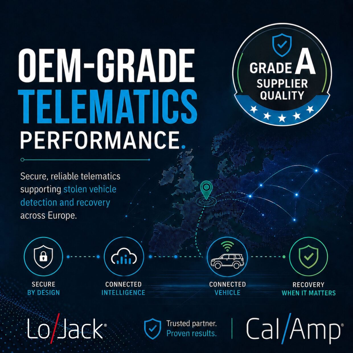 Per il secondo anno consecutivo, CalAmp, attraverso la controllata europea LoJack Italia, ha ottenuto il prestigioso riconoscimento di livello A nella classifica qualità fornitori di Toyota Motor Europe. Un risultato che conferma la solidità di una collaborazione strategica attiva da oltre dieci anni e focalizzata sui servizi telematici per il rilevamento e il recupero dei veicoli rubati dei marchi Toyota e Lexus in Europa.