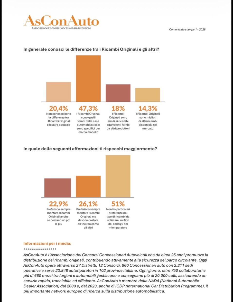 Secondo AsConAuto, proprio questa fiducia rappresenta un patrimonio da valorizzare. «La fiducia del cliente è un patrimonio prezioso, ma comporta responsabilità: le officine devono guidare il cliente con chiarezza e trasparenza, trasformando la fiducia in consapevolezza. Informare non significa complicare la scelta, ma valorizzarla», ha sottolineato Roberto Scarabel. Un approccio che può rafforzare il legame officina-cliente e rendere il Ricambio Originale una scelta condivisa, non subita. «Nel 2026 continueremo a lavorare sulla rete di officine e carrozzerie in partnership con le Case Auto, intensificando anche la comunicazione verso l’utilizzatore finale», ha concluso Scarabel, ribadendo l’obiettivo di diffondere una maggiore conoscenza delle soluzioni disponibili e favorire decisioni sempre più consapevoli da parte degli automobilisti.